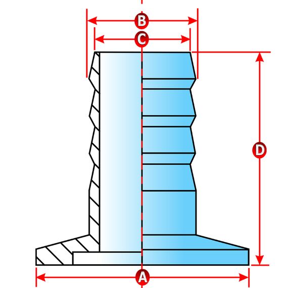 These adapter rubber hose nozzles are KF-50 to rubber hose and fit a 8 mm or 1/4 to 5/16 inch ID rubber hose. The flange size follows ISO-KF standards and is NW-50. They are commonly used to make connections between ISO-KF fittings and rubber vacuum hoses. The ISO-KF flanges are often called quick flange fittings because they are quick to assemble. A circumferential clamp and centering ring form the vacuum seal between the connecting flanges (please see top right figure - click to enlarge). The centering ring contains a rubber elastomer o-ring. The standard sizes for quick flange fittings are KF-10, KF-16, KF-25, KF-40, and KF-50 with flange sizes NW-10, NW-16, NW-25, NW-40, and NW-50, respectively. They are made of Stainless Steel.