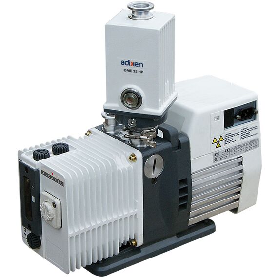 This Oil Mist Eliminator is specially designed for applications involving frequent cycling of high pressure operation and is mainly dedicated to 2015 and 2021 Series Alcatel Adixen rotary vane vaccum pumps. This Alcatel Adixen Oil Mist Filter Eliminator stops oil mist from escaping from the exhaust port, mainly when pumping between atmosphere pressure and 1 mbar (1 mTorr). Oil mist eliminators retain oil mist contained in the exhausted gases with a high level of separation; an internal over pressure valve prevents exceeding the maximum permissible exhaust pressure. Supplied with filter element, one KF25 centering ring, and one clamp. This OME25HP (OME 25 HP) Alcatel Adixen Oil Mist Eliminator uses replacement cartridge P102593 located on this website.