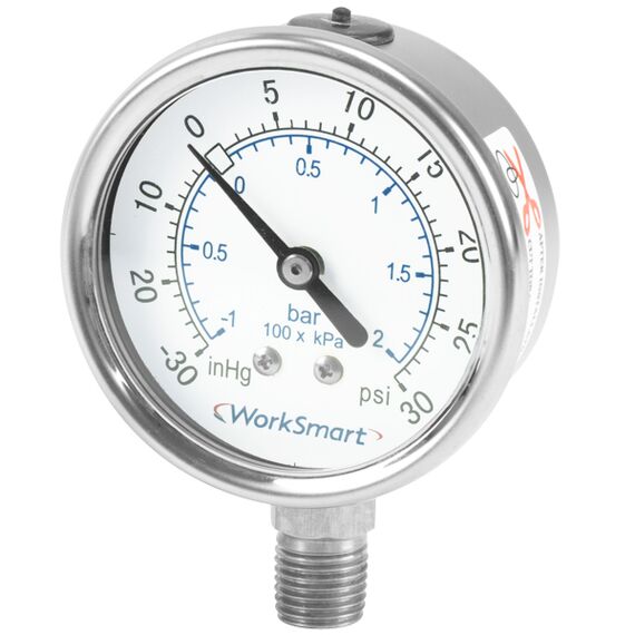 Bourdon Needle Dial Vacuum Pressure Gauge With 1/4 inch NPT Male, -30 in. Hg to 0 to 30 PSI