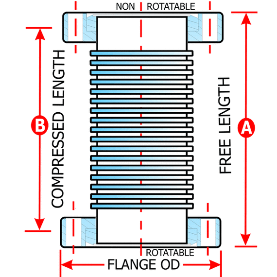 Common Dimensions: (A) Free Length = 12", (B) Compressed Length = 10.90", Flange Size OD = 4.5"
