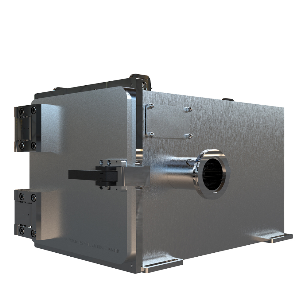 Fabricated and assembled entirely in our manufacturing facility, these robust, inexpensive vacuum chambers are a highly efficient way for your R&D lab to get into high vacuum applications. With an internal dimension of at least 12x12x20 inches, all of these chambers are made with corrosion resistant 304 stainless steel plate. These leak-tested chambers are internally TIG welded, and include an O-ring seal, sturdy hinged door, and easy open latch for quick access. Your choice of door includes an inexpensive aluminum door or a stainless steel door for chemical resistance, and aluminum or stainless steel door with a built-in viewing port. For custom options please call.