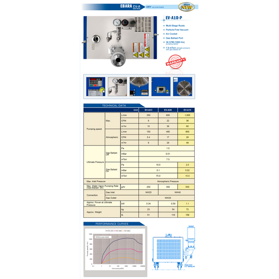 - Benefits and Features of the Ebara EV-A series dry rotary lobe pumps.