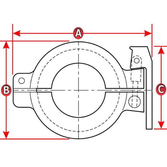 Common Dimensions: A=2.68" (68mm), B=1.57" (40mm), C=2.24" (57mm)