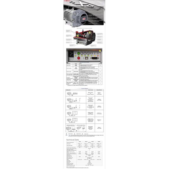 To pump high vapor loads, gas ballast can be delivered into the pump to prevent condensation of the vapor carried by the pumped gases. The logic interface has been designed to support both serial control, parallel control and monitoring, operating through one connector. For serial control either RS232 or RS485 can be selected.