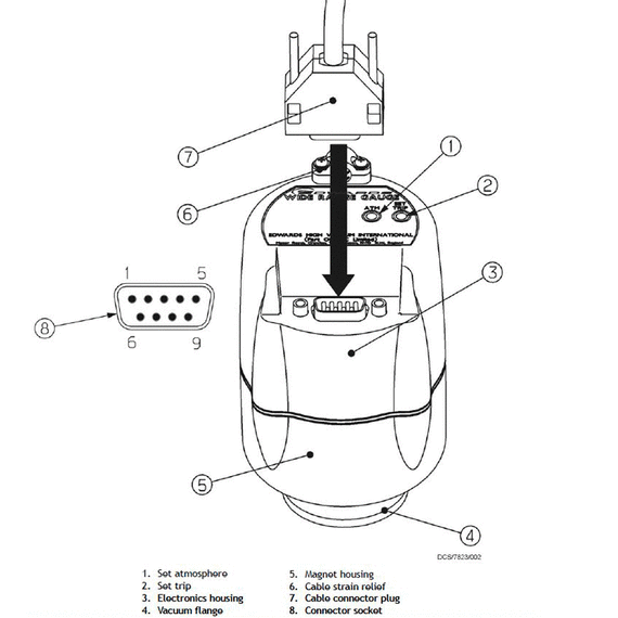 Ewards WRG-D-NW25 9 way D-type male connector With Cable Strain Relief Active Wide Range Gauge NW25, KF25 Flange. ATM (atmosphere) to 10-9 Torr