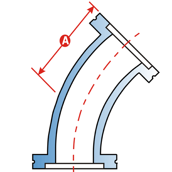 Elbow 45 Degrees, NW-63 Vacuum Fittings, ISO-LF Large Flange Size NW-63, Stainless Steel