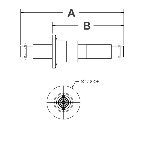 Common Dimensions: A = 3.66", B = 2.53", Feedthrough Diameter: 1.18" KF16 QF16 Material: Stainless Steel (with air side connection) Feedthroughs (or vacuum feedthroughs) come in many forms to transfer electrical currents, signals, fluids, gases or mechanical movements from outside the vacuum (air side) to the inside (vacuum side) of a vacuum chamber to equipment within the chamber. The entry point for the feedthrough must be vacuum-sealed via a suitable through hole. The feedthrough can be weldable (weld-on) or connected with a CF, KF or ISO vacuum flange to the vacuum chamber. CF Conflat flanges are normally for processes requiring ultra high vacuum pressures, down to 10-12 Torr, and are vacuum sealed via nuts and bolts with copper gaskets. They come in sizes from 1.33 in. (mini conflat), 2.75, 4.5, 6, 8, 10, 12, 13.25, 14 and 16.5. inch O.D. Outer Diameter. KF or Quick Flange are for high vacuum pressures down to 10-9 Torr and are vacuum sealed via clamps and elastomer O-Rings. They come in KF10, KF16, KF25, KF40 and KF50 sizes. ISO or Large Flange are for high vacuum pressures down to 10-6 Torr and are vacuum sealed via nuts and bolts (for flanges with bolt holes) or with claw clamps (for flanges with smooth faces and no bolt holes). They use Elastomer O-Rings for vacuum seals. They come in sizes from 63mm, 80, 100, 160, 200, 250, 320, 400, 500, and 630mm sizes. All flanges are made of corrosive resistant stainless steel. There are 1000's of feedthroughs and selection can be very difficult for your specific vacuum process. If you have any doubts about your requirements please contact our on staff engineers to help you find the proper feedthroughs for your vacuum process. We specialize in out of the ordinary customized feedthroughs, vacuum chambers and accessories. Please call us at 505-872-0037.