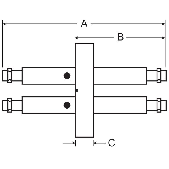 - Dimensions: A = 4.18", B = 2.35", C = 0.50"