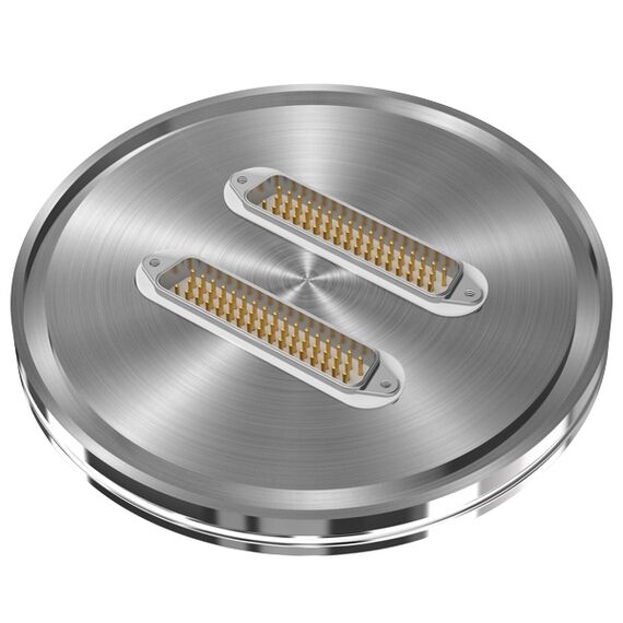 Our D-Sub feedthroughs are UHV rated with a straight-through, pin and socket design, hermetically sealed with a specially bonded glass ceramic. Each pin/socket assembly is gold plated and rated to 500 volts and 5 amps. All D-sub feedthroughs are bakeable to 250° C.