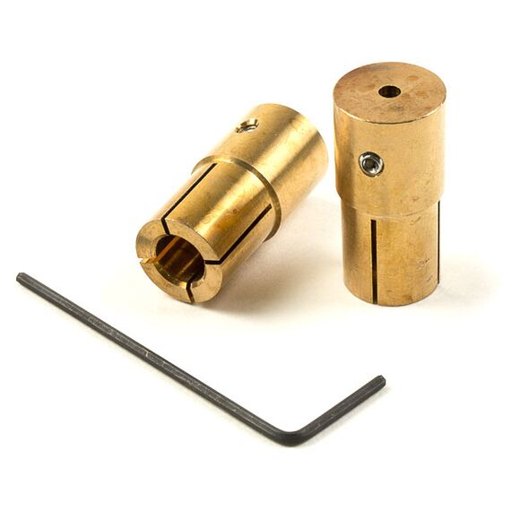 Beryllium copper alloy connectors secure wires of differing diameters within a vacuum environment. One side secures a 0.096 inch diameter wire with an Allen screw; the other side is simply pushed on to a 0.252 inch diameter feedthrough power terminus. These connectors are UHV compatible and bakeable to 150° C in air and 200° C in a vacuum.