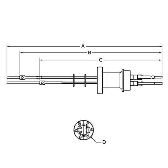 They can contain one or more pairs of wires and have molded plugs, push ons, split connectors and could have lugs or screw connectors on the inside (vacuum) or outside (atmosphere). Things to consider are temperature range, number of temperature locations, sheath material, wire diameter, metal type, and power conductors within the same feedthrough. There are many types of thermocouple feedthroughs made with many different metals having different temperature ranges. When selection is in doubt, please call us.