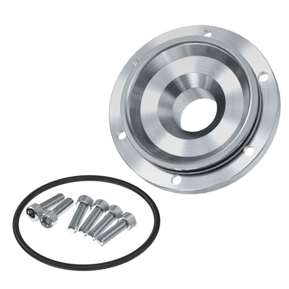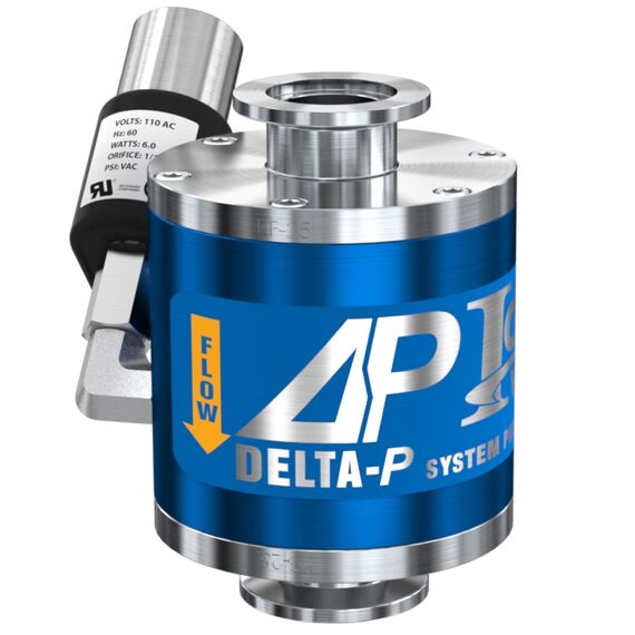 This flange end, machined out of solid 6061-T6 aluminum, fits either side of the Delta-P Valve. Use it to replace a damaged one, to match ports on a mechanical pump with a different flange size, or to eliminate a flange adapter when connecting the Delta-P inlet flange to your vacuum system line.