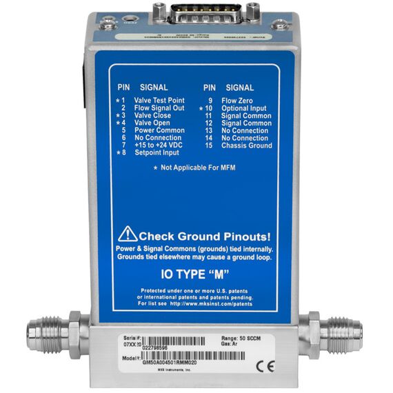 GM50A Mass Flow Controller (MFC) Digitally-Controlled, Range of 10 to 500 sccm, 15-pin D-subminiature, 4 VCR male.