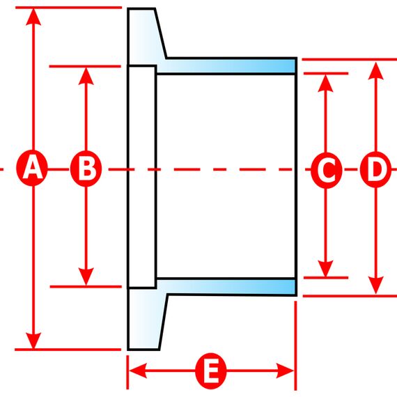 These KF-16, 1/2 inch OD tube, Half Nipple Long Weld Stub fittings follow ISO-KF standards and have a flange size of NW-16. They are commonly used to build foreline vacuum plumbing and process systems. They are often called quick flange fittings because they are quick to assemble. A circumferential clamp and centering ring form the vacuum seal between the connecting flanges (please see top right figure - click to enlarge). The centering ring contains a rubber elastomer o-ring. The standard sizes for quick flange fittings are KF-10, KF-16, KF-25, KF-40, and KF-50 with flange sizes NW-10, NW-16, NW-25, NW-40, and NW-50, respectively. They are made of corrosive resistant stainless steel.