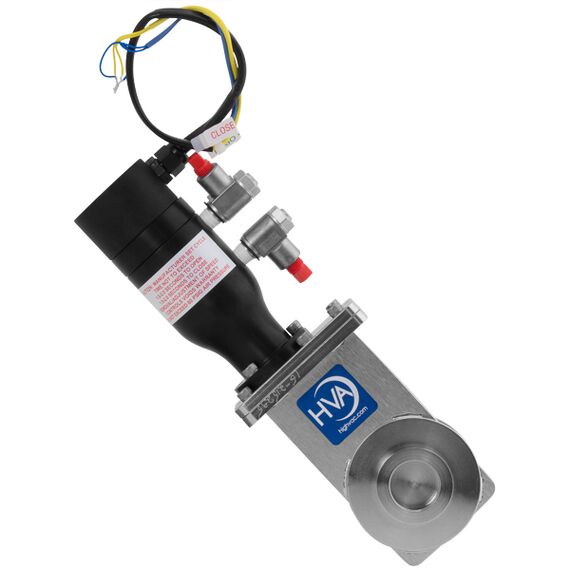 These pneumatically operated valves include 1/4" OD tubing push-to-connect fittings. Open and closed position sensors are built into the pneumatic actuator and are standard on all HVA pneumatic gate valves. These on/off switches can be used to activate indicator lights or used to control a more complex or automated vacuum protection system. Solenoids for pneumatic valves are available in 24 VDC and 120 VAC varieties and are sold separately. Repair kits are available for all HVA gate valves we carry.