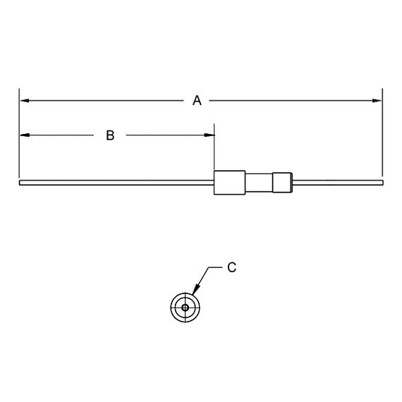 Common Dimensions: A = 2.5", B = 1", C = 0.154" Feedthrough Diameter: 0.154" Material: Stainless Steel, Nickel Feedthroughs (or vacuum feedthroughs) come in many forms to transfer electrical currents, signals, fluids, gases or mechanical movements from outside the vacuum (air side) to the inside (vacuum side) of a vacuum chamber to equipment within the chamber. The entry point for the feedthrough must be vacuum-sealed via a suitable through hole. The feedthrough can be weldable (weld-on) or connected with a CF, KF or ISO vacuum flange to the vacuum chamber. CF Conflat flanges are normally for processes requiring ultra high vacuum pressures, down to 10-12 Torr, and are vacuum sealed via nuts and bolts with copper gaskets. They come in sizes from 1.33 in. (mini conflat), 2.75, 4.5, 6, 8, 10, 12, 13.25, 14 and 16.5. inch O.D. Outer Diameter. KF or Quick Flange are for high vacuum pressures down to 10-9 Torr and are vacuum sealed via clamps and elastomer O-Rings. They come in KF10, KF16, KF25, KF40 and KF50 sizes. ISO or Large Flange are for high vacuum pressures down to 10-6 Torr and are vacuum sealed via nuts and bolts (for flanges with bolt holes) or with claw clamps (for flanges with smooth faces and no bolt holes). They use Elastomer O-Rings for vacuum seals. They come in sizes from 63mm, 80, 100, 160, 200, 250, 320, 400, 500, and 630mm sizes. All flanges are made of corrosive resistant stainless steel. There are 1000's of feedthroughs and selection can be very difficult for your specific vacuum process. If you have any doubts about your requirements please contact our on staff engineers to help you find the proper feedthroughs for your vacuum process. We specialize in out of the ordinary customized feedthroughs, vacuum chambers and accessories. Please call us at 505-872-0037.