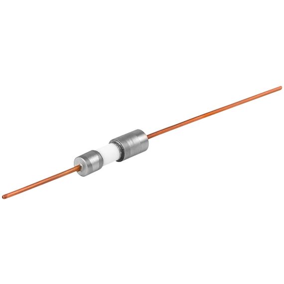 Copper electrical feedthroughs convey high voltage-high amperage power into high-vacuum environments for operating heating coils in sputtering, coating and other demanding material evaporation applications. These rugged copper power feedthroughs are UHV rated and bakeable to 450° C and have a weldable 0.247 in. diameter insulated sub-assembly.