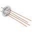 They can contain one or more pairs of wires and have molded plugs, push ons, split connectors and could have lugs or screw connectors on the inside (vacuum) or outside (atmosphere). Things to consider are temperature range, number of temperature locations, sheath material, wire diameter, metal type, and power conductors within the same feedthrough. There are many types of thermocouple feedthroughs made with many different metals having different temperature ranges. When selection is in doubt, please call us.