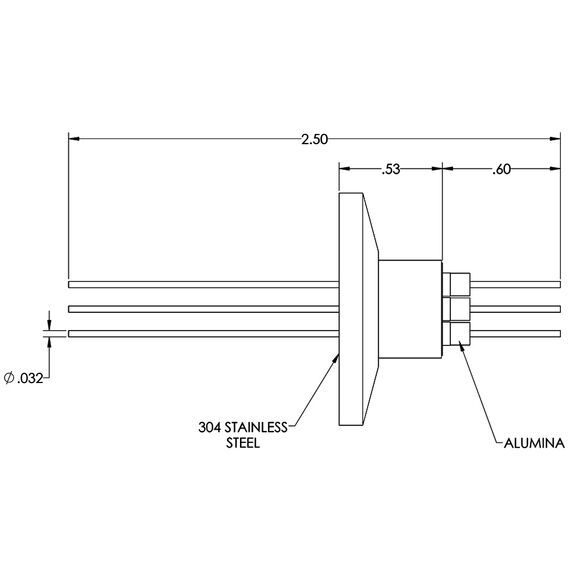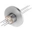 Power feedthroughs are a type of electrical feedthrough that transmits electricity from atmosphere (outside) to vacuum (inside). Power Feedthroughs have one or more conductors entering the vacuum device chamber walls. The conductors are sealed to an electrical insulator that are either welded to or connected via a vacuum flange or baseplate. Conductor metal comes in wire, rod or tubes. Conductor material is based on current, corrosion resistance and magnetism. Things to consider for selection are operating voltage, maximum current, base pressures and the working environment. Never under specify voltage or current, this may cause arcing, melting or insulator break down. When selection is in doubt, please call us.