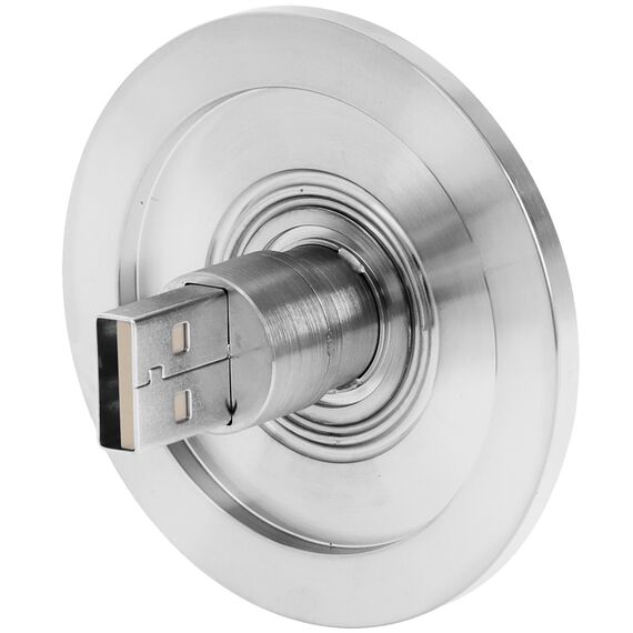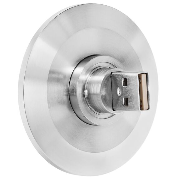 Ideal Vacuum USB Feedthrough Double-Ended, ISO KF 40 Flange Without Plugs. Feedthroughs (or vacuum feedthroughs) come in many forms to transfer electrical currents, signals, fluids, gases or mechanical movements from outside the vacuum (air side) to the inside (vacuum side) of a vacuum chamber to equipment within the chamber. The entry point for the feedthrough must be vacuum-sealed via a suitable through hole. The feedthrough can be connected to a KF vacuum flange.
