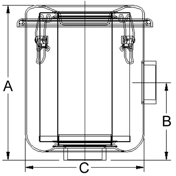 Dimensions: A: 6 3/4", B: 4 1/2", C: 7 5/16".