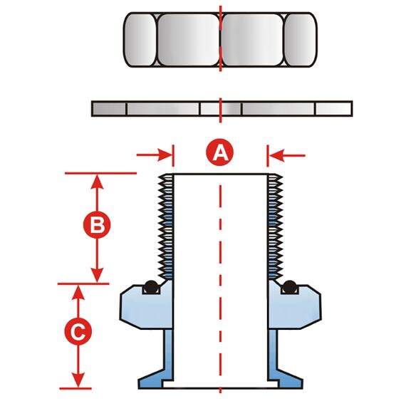 KF-25 Bulkhead Feedthrough Adapter, Stainless Steel with Viton O-Ring Seal, for 1" Hole Through, up to 1" Thick.
