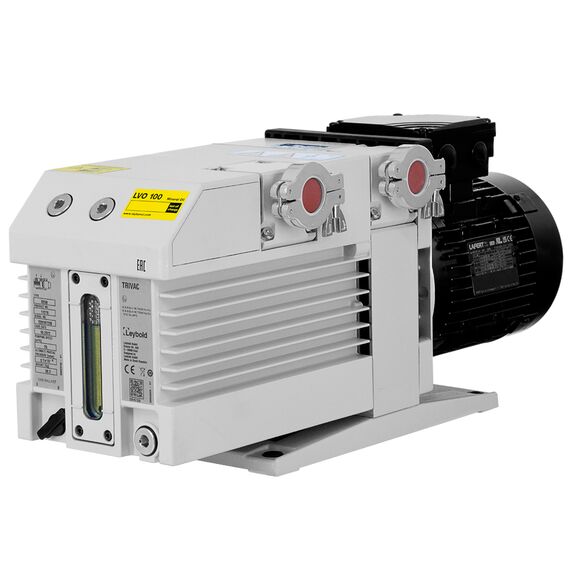 The Leybold D25/D 25 B Trivac are durable vacuum pumps with a superior vapor handling capability. The Leybold D25B dual stage rotary vane mechanical vacuum pumps offer an excellent ultimate pressure of 1x10-4 Torr. These pumps are commonly used for vacuum furnace evacuation, backing turbomolecular pumps, backing diffusion pumps, rotary evaporation, refrigeration system evacuation, epoxy degassing, vacuum sterilization, backing mass spectrometers, freeze drying, vacuum centrifugal applications, vacuum distillation, space research, and other vacuum processes. These Leybold D25/D 25 B vacuum pumps have a pumping speed displacement of 20.9 CFM. This pump comes with a manufacturer's warranty. Parts, oils and accesories for this pump are located on this website. These Leybold D25B rotary vane vacuum pumps part number 11276 operate on 3-Phase 208/480 VAC.