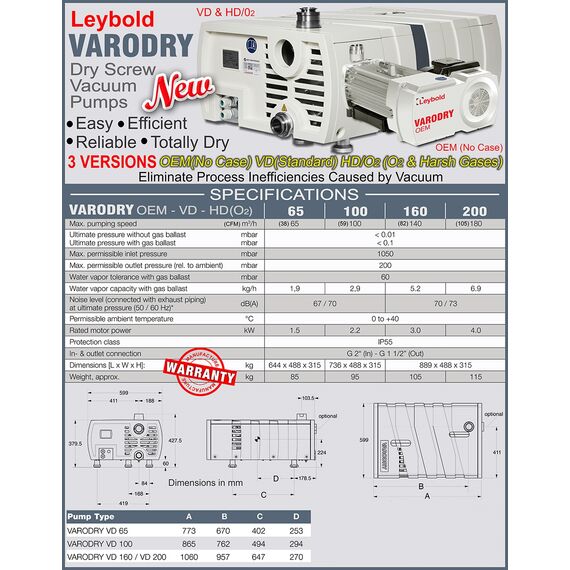 These VARODRY are fully air-cooled and oil free. That results in the fact that the VARODRY only consumes electricity. You will never experience any extra costs for cooling water supply or oil/oil filter exchange and disposal. Additionally, its low power consumption offers you significant energy savings. The Total Cost of Ownership savings offered by VARODRY are a market benchmark for a wide range of demanding applications, expecially where standard pumps require a lot of maintenance. And copared to oil sealed rotary vane pumps the VARODRY will save you money in operational costs.
