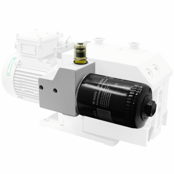 Since there is a pressure-lubrication system with the oil pump in every Leybold TRIVAC B Vacuum Pump, it is possible to connect main flow oil filters. Oil Filters are available either for mechanical filtering (OF types) or combined chemical/mechanical filtering (CF types). Supplied Equipment includes the filter housing and one canister WF 4-25 interchangeable filter. For use and advantages to the user, download Mechanical Oil Filter Data Sheet.PDF, see (AVAILABLE DOWNLOADS:) below.