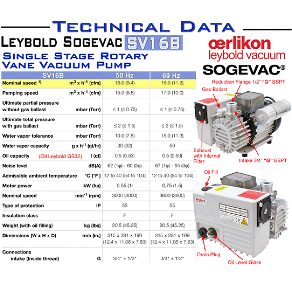 Leybold Sogevac SV-16B pumps are available in three Voltage configurations: