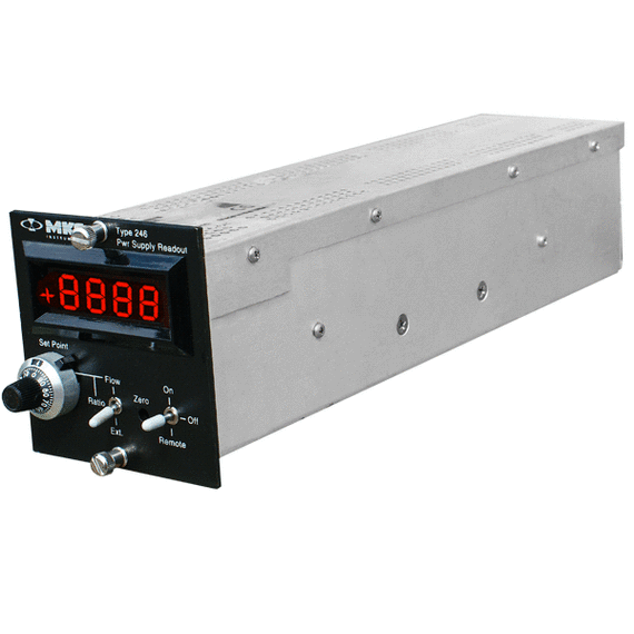 The MKS Type 246 246C Power Supplies/Readouts are designed to control and display any flow transducer. The flow rate set point can be adjusted either through front panel controls or remotely through the rear panel analog interface. The 246 246C is a single channel single readout unit. Compatible with mass flow controllers and mass flow readouts 179, 180, 579, 1179, 1479,