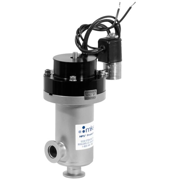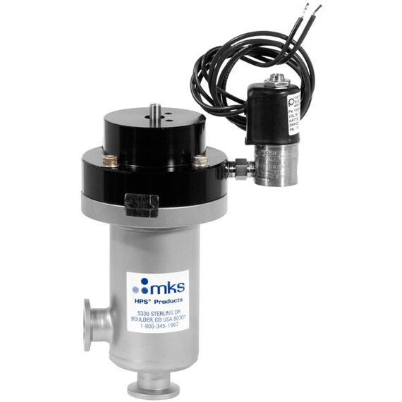 Solenoid Valves are reliable, small, and consistent with needed conductance. Solenoid coils are available for use with a wide range of voltages and frequencies; this MKS Instruments Electromagnetic Valve comes with a solenoid voltage and frequency of 120V/50-60 (Part Number: 153-0016K-120V/50-60). Many accessories can be attached through the pneumatic connection port. Another feature of the solenoid control valve is the threaded vent port that can accept an exhaust fitting. This is crucial in applications where it is not allowable to vent waste air into the room, for example in cleanrooms.