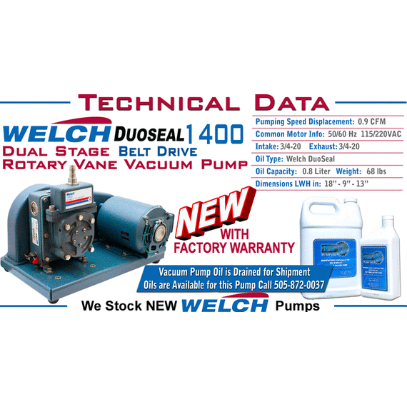 NEW Welch 1400 DuoSeal Belt Drive Rotary Vane Mechanical Vacuum Pump PN 1400B-01