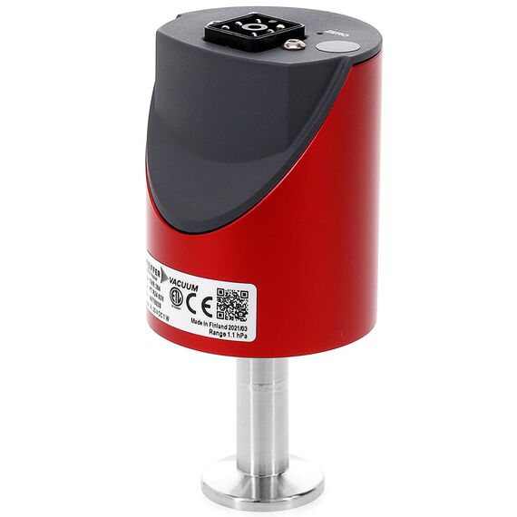 The Pfeiffer CMR 364 capacitance diaphragm gauge, with CF 1-1/3 (DN 16 CF-R) flange, has a full scale measuring range of 1 hPa (1 mBar/750 mTorr) and a minimum measure of 10-4 mbar (7.5 x10-2 mTorr). This gauge has a response time of 30ms with an accuracy of 0.2% of the measured value. A ceramic aluminum oxide capacitive sensor element is used to measure the absolute pressure of gasses, independent of gas type or composition. Lookup tables and gas conversion calculations are not needed.