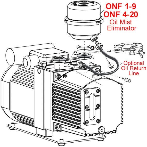 These Pfeiffer oil return units puts the oil mist droplets from the ONF 16S oil mist elminator back into the rotary vane pump via the gas ballast as a liquid. These products are recommended for Pfeiffer vacuum pump applications that often require cycling of the vacuum chamber to atmosphere. To learn how to install the oil return unit, download the .PDF below at AVAILABLE DOWNLOADS "See Section 5.2, Installing the oil return line".