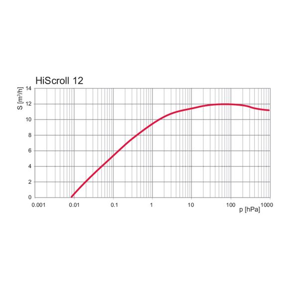 This Hiscroll 12 pump with the pressure sensor option provides pressure regulation by varying the speed of the pump so that a target pressure is achieved. Pressure regulation operation is effective in the range between final pressure and 22.5 Torr (30 hPa).