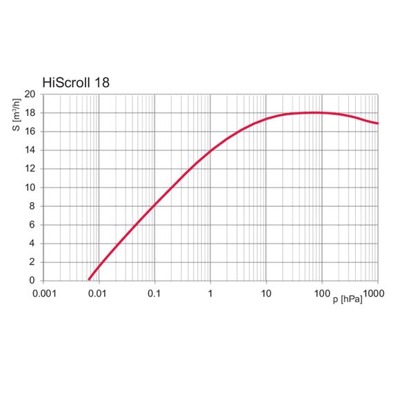 This Hiscroll 18 pump with the pressure sensor option provides pressure regulation by varying the speed of the pump so that a target pressure is achieved. Pressure regulation operation is effective in the range between final pressure and 22.5 Torr (30 hPa).
