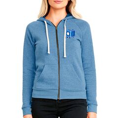 9603 Next Level Ladies Full-Zip Hoody with  Vacuum Logo Embroidery, Heather Bay Blue Color, Medium. 7.4 oz., 60% cotton, 40% polyester, heathered fleece, contrast drawcord and zipper, jersey lined hood, raglan sleeve, tear-away label, 1x1 ribbing waistband and cuffs, sideseamed. Thank you...