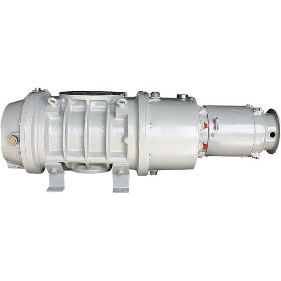 The QMB pumps are positive displacement Roots vacuum pumps. The pump mechanism is driven by a three-phase electric motor through a hydrokinetic fluid-coupling. The motor is enclosed and is cooled by integral cooling-water coils. The pump shafts and rotors are made of high-grade, corrosion-resistant, cast-iron. The internal and external shaft-seals are made of polytetrafluoroethylene (PTFE) or fluoroelastomer. The pump-bearings, gears and seals are lubricated by oil fed from reservoirs in the coupling-cover.