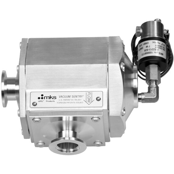 Vacuum Pump Isolation Valves close rapidly when power is interrupted to prevent oil backstreaming or particle migration into your vacuum system. The valve also vents the pump from the inlet side to push any debris towards the outlet, thereby preventing it from being swept into the system when restarting the pump.