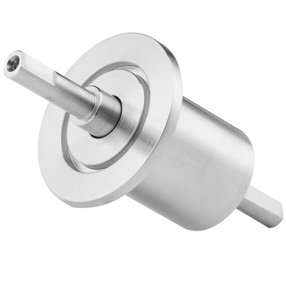 These Rigaku KF-25 flanged vacuum rotary feedthroughs, are a ferromagnetic sealed device, which uses dynamic sealing to allow free rotation of a solid shaft. These high performance vacuum rotary motion feedthroughs have the following features: