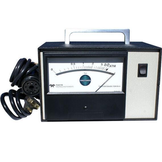 This Teledyne-Hastings model VT-4AB (VT-4B-X-Y) enclosed cabinet gauge controller for DV-4 thermocouple vacuum tube gauges controllers measures between 0 and 20 Torr, and operates on 115 VAC. This model has connected power and gauge tube cables. It also features BNC connectors on the back for output (0-1 VDC analog, non-linear). Please see the Gauge Controller manual in the downloads for specs and information. Thermocouple tubes are sold separately.