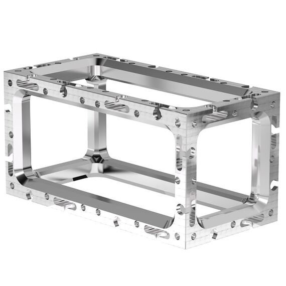 Vacuum Cubes can easily be stacked together to build a complex, yet lightweight vacuum system (see graphic below). The outer edges of each vacuum cube feature hardware mounting sockets for easy cube-to-cube connections. A cube coupling kit includes the hardware needed to connect two cubes together. This allows scientists to creatively construct long or odd-shaped vacuum systems in a laboratory.