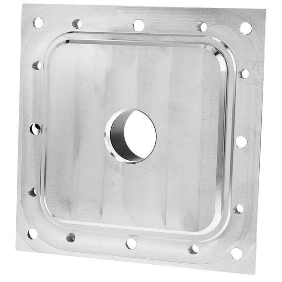 These Vacuum Cube 6x6 inch vacuum chamber plates are built to accommodate any of a variety of 1.5 inch diameter viewports (sold separately and not included with this item). With the addition of a specific viewport lens, the entire plate effectively becomes an inexpensive and conveniently demountable viewport, quickly and easily swapped for a different viewport/plate combination. These plates use a series of Viton O-ring gaskets, operate down to 10-8 torr (10-11 Pa), and have a max bakeout temperature of 150° C. These viewport plates are designed to fit our 6x6x6 vacuum cubes (each cube require 6 plates). These viewport plates are build with our patented tapper seal technology which incorporates sloped sealing features to help prevent damage to the vacuum sealing surfaces. These Vacuum Cube plates are CNC milled from a single block of lightweight 6061-T6 Aluminum Alloy. This is the sale of a Vacuum Cube 6x6 inch viewport plate only (other glass lenses, plates, frames, and hardware are required and are sold separately). If there is a specific window diameter and glass thickness you need but isn’t displayed, please don’t hesitate to call (505-872-0037) and consult with our engineers. We can manufacture various mounting rings to accommodate a variety of sizes not currently listed.