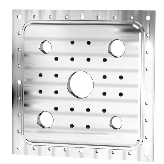 These   Vacuum Cube 9x9 inch plate with assorted pumping and or feedthrough ports are designed to fit our 9x9x9 vacuum cubes (each cube require 6 plates). These ported plates are built with our patent pending taper seal technology which incorporates sloped sealing features to help prevent damage to the vacuum sealing surfaces. These Vacuum Cube plates are CNC milled from a single block of lightweight 6061-T6 Aluminum Alloy. This is the sale of a   Vacuum Cube 9x9 inch with assorted (1xNW40, 2xNW25, 2xNW16) pumping and or feedthrough ports only (other plates, frame, and hardware are required and sold separately).