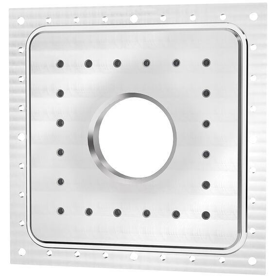 This Vacuum Cube 9x9 inch plate with one centered Conflat CF 6.0 inches (CF 4.5") pumping/feedthrough port is designed to fit our 9x9x9 vacuum cubes (each cube requires 6 plates). This plate's Conflat port requires eight (8) 5/16-24 x 1.0" long, silver-plated, 12 point bolts (our part number: P1012250). These conflat ported plates are built with our patented taper seal technology which incorporates sloped sealing features to help prevent damage to the vacuum sealing surfaces. These Vacuum Cube plates are CNC milled from a single block of 6061-T6 Aluminum Alloy. This is the sale of a Vacuum Cube 9x9 inch with one CF 6.0 in. port only (other plates, frame, and hardware are required and sold separately).