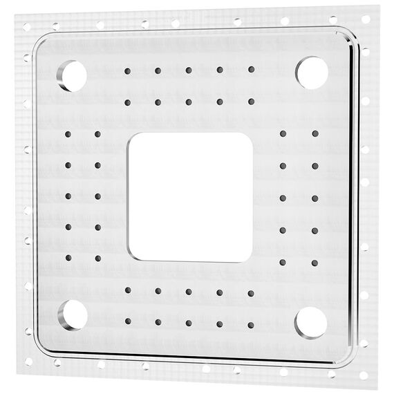 This is an uncoated Vacuum Cube adapter plate that converts a 12x12 Cube frame opening to a single, centered 6x6 inch opening. This adapter plate also has four KF-25 ports located in the corners of the plate. The 6x6 opening accepts any 6x6 Cube plate, greatly expanding porting options for pumping and feedthroughs, or viewing options. These 12x12 adapter plates are built with our patented taper seal technology which incorporates sloped sealing features to help prevent damage to the vacuum sealing surfaces. These Vacuum Cube plates are CNC milled from a single block of lightweight 6061-T6 Aluminum Alloy. This is the sale of the adapter plate only. Other hardware, including plates, frame, O-ring seals and bolt kits are required and sold separately. Please see the Cube Plate Installation Manual in the downloads for installation instructions.