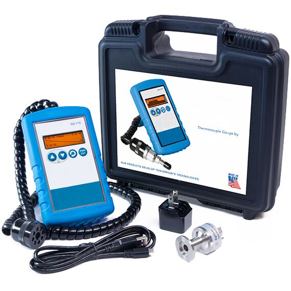 Our Labideal Vacuum  XG-110 portable controller with included Swagelok® 4 VCR® flanged vacuum thermocouple sensor is a rugged vacuum gauge system which features visual graphing to pinpoint vacuum problems in real-time (for example, vacuum leaks, vacuum pump issues, outgasing, and vacuum stability). The XG-110 includes a powerful magnet and kickstand to enable hands-free operation. They provide outstanding performance, delivering repeatable and stable pressure measurements in the 0.7 milliTorr to 800 Torr range.
