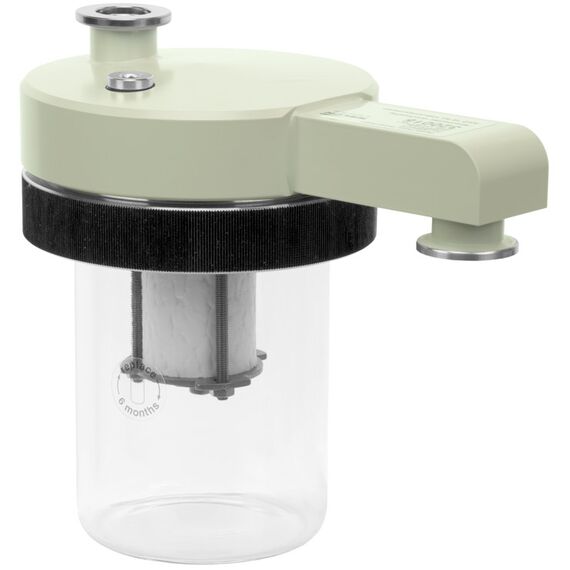 This Welch Oil Mist Separator is mounted to the outlet of a rotary vane pump (belt or direct drive) and removes oil particles from the exhaust stream. This minimizes and contains oil loss to the atmosphere. This oil mist separator has a KF-16 (NW 16) mount and can be used on any wet vacuum pump with a KF-16 port.
